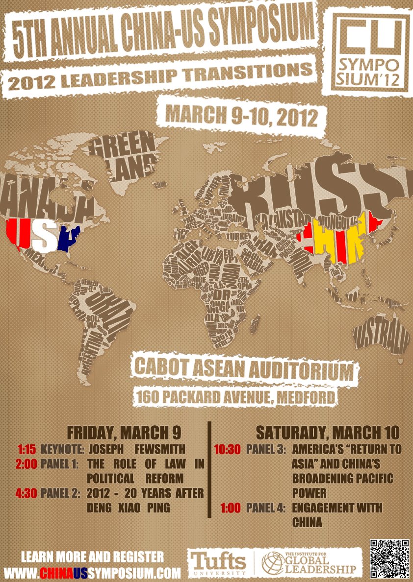 The Seventh Annual China-U.S. Symposium was made possible with the support of the Tufts Institute for Global Leadership (IGL), the Alliance Linking Leaders in Education and the Services (ALLIES), the Tufts Community Union (TCU), the Tufts Asian Studies Program, and the Office of the President.