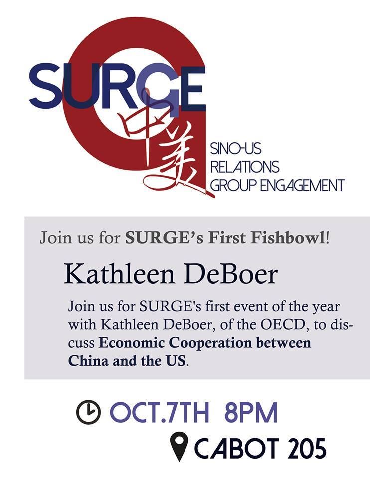 We will be hearing Kathleen DeBoer, Deputy Head of the Organization for Economic Co-Operation and Development’s Washington Center, discuss the increasingly relevant issue of economic cooperation between the US and China. She will be providing insight both through her work with the OECD and her time living and teaching in Nanjing, China.